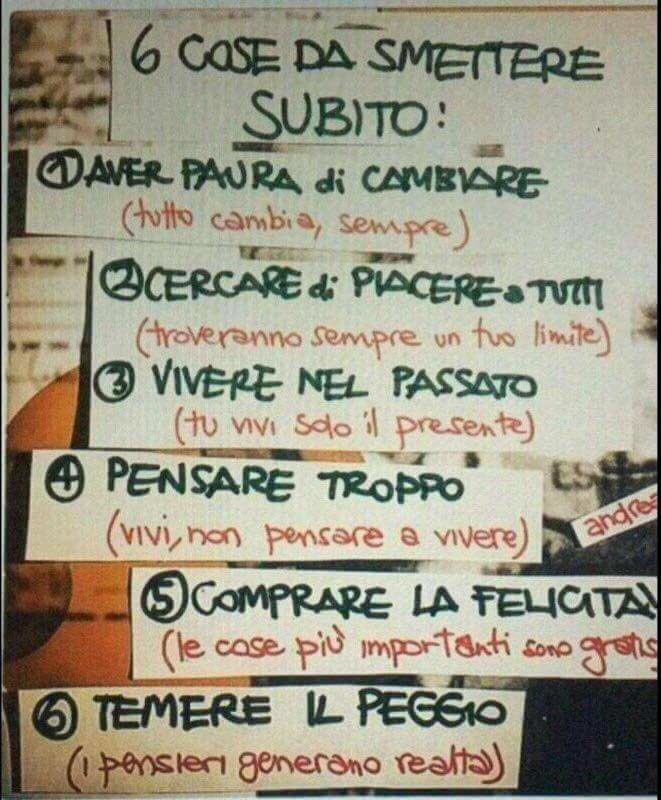 Cominciamo con questo elenco, che sa tanto di corso motivazionale, lo so, ma mi vede pienamente concorde.